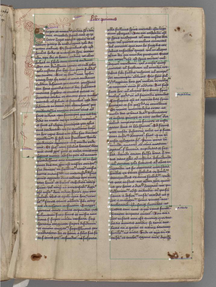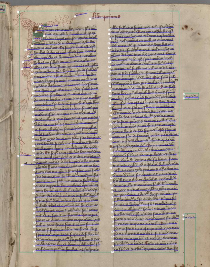Transkribus also allows users to adjust parameters for layout analysis. Despite experimenting with these settings, we were unable to achieve the correct number of segments on a manuscript page that included a title. This suggests that more robust performance on complex layouts is likely only achievable by training a custom model tailored to the specific data. In our tests, we chose to force the model to detect “multiple” segments - see Figure 15 for the results.