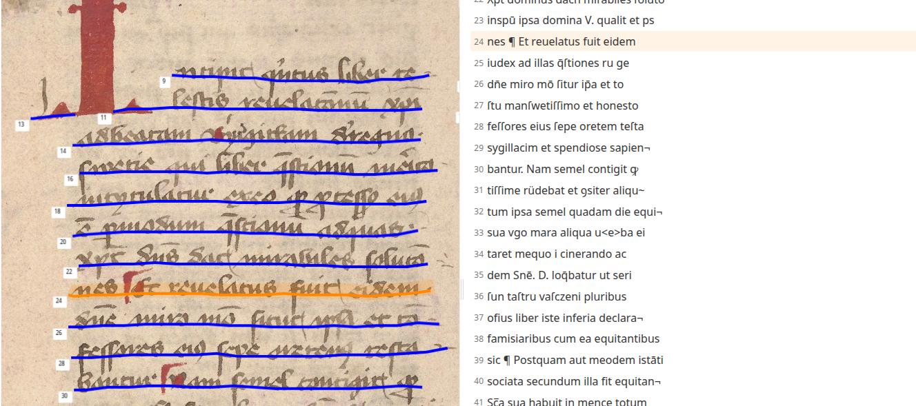 To explore a free alternative, we also tested a pyLaia-based model available in Transkribus: Medieval_Scripts_M2.4. Trained on 24,764 pages, this model was developed as a general-purpose HTR solution for medieval Latin scripts.