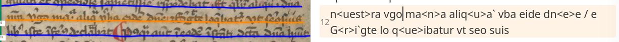 • In Figure 10 below, the scribal abbreviation for “est” (‘is’), ẽ, was correctly recognized by CATMuS but not TRIDIS. However, neither model detected the “per” abbreviation, p̱, leading to mistaken readings of “ꝓ” or plain “p.”