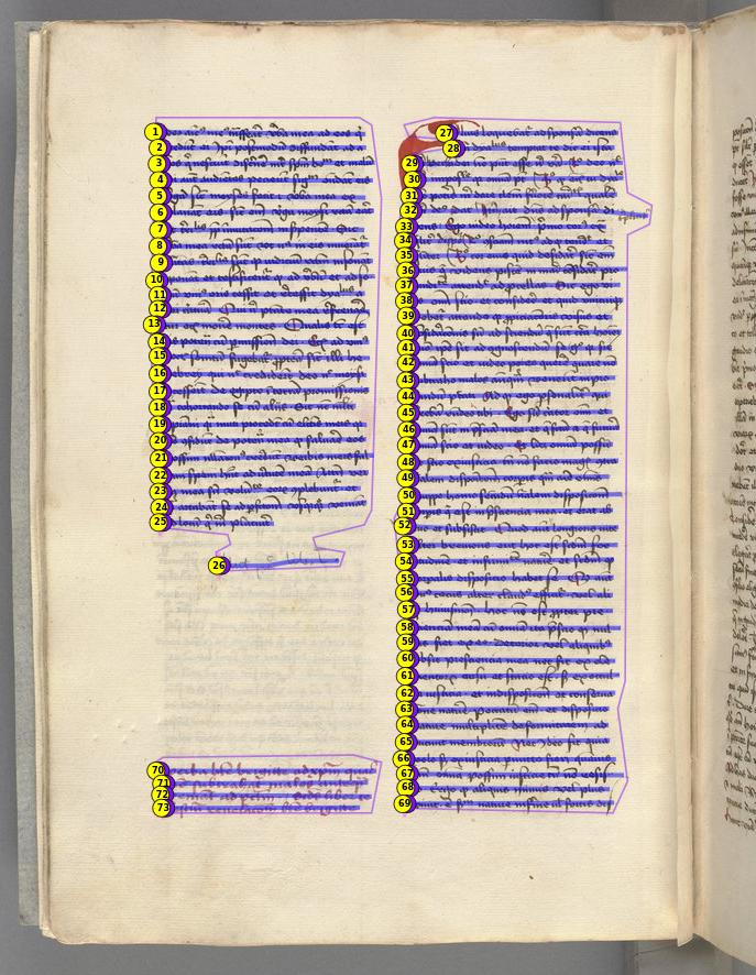 In addition to problems with reading order, some lines are not properly segmented: a few are merged across both columns, while others are omitted altogether. These examples highlight the limitations of the default segmentation model when applied to complex or irregular layouts, and suggest that fine-tuning may be necessary for improved performance.