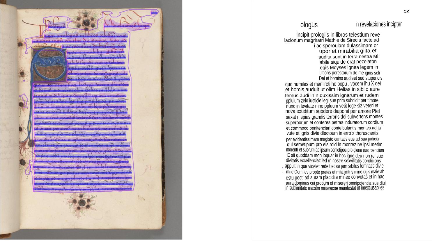 Segmentation errors can further complicate evaluation. In Figure 7 and Figure 8 above, the words “Prologus” and “Incipit” lie partially outside the detected text region. Because the model never “sees” the full word image, it predictably fails to transcribe it correctly - underscoring how even the best HTR engine depends on accurate region detection.